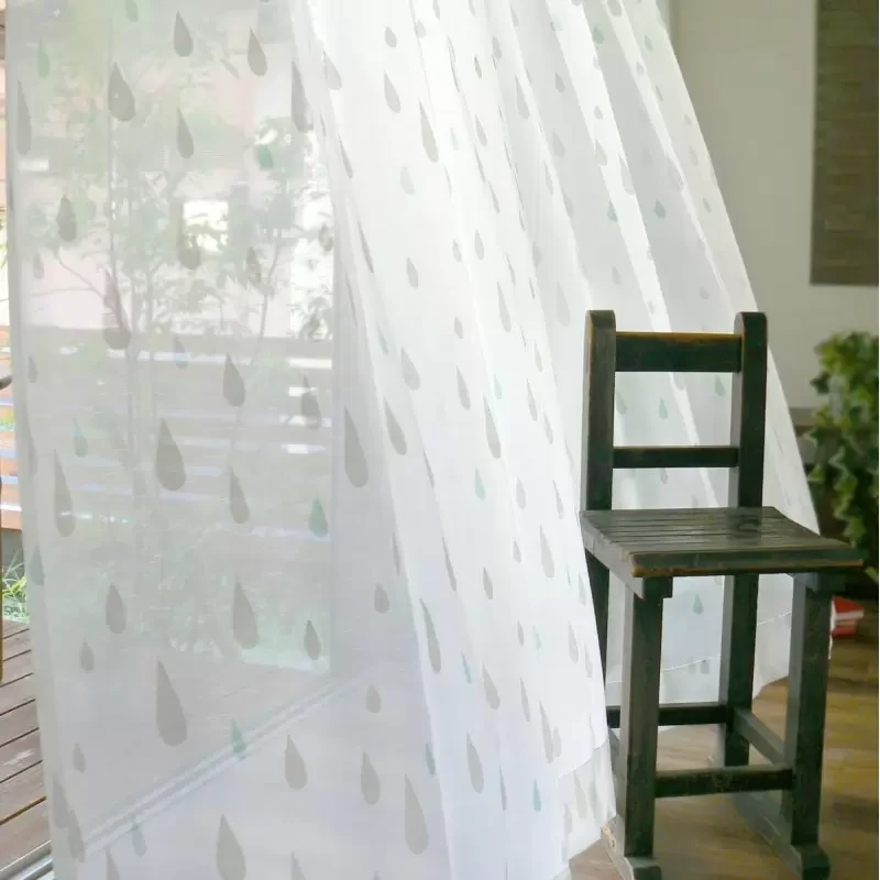 水滴をモチーフにした北欧調のレースカーテンです。ホワイトとカラーのカスレ感がナチュラルさと抜け感を感じさせます。