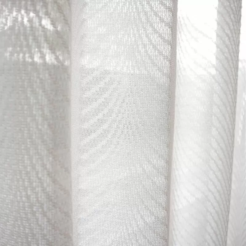 ミラー・UVカット機能付きのレースカーテンです。細かいダイヤが連なった独特の柄でタテのストライプが表現されたレースです。縦のラインの一部にきらりと光るラメ糸が使用されています。